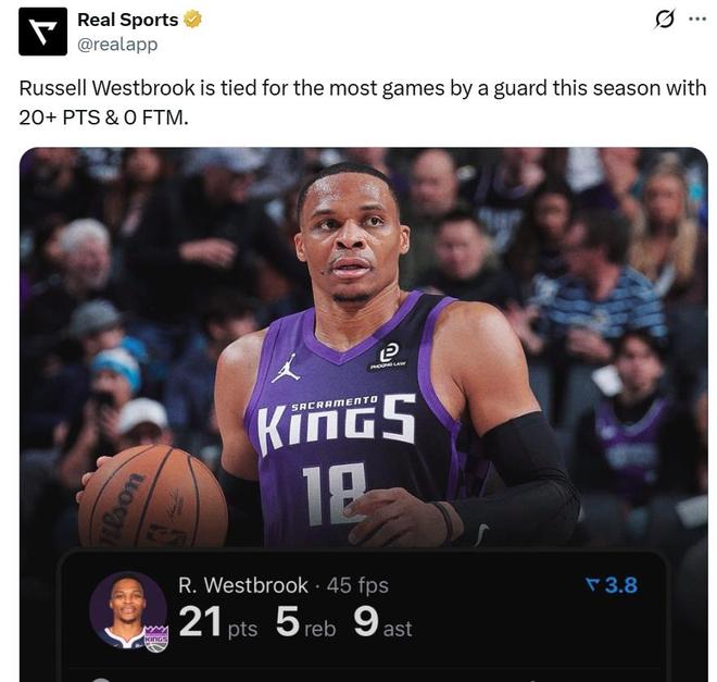 高效轰21+5+9,威少刷爆纪录成历史唯一!一战迎生涯双里程碑,事实证明错得根本就不是你。