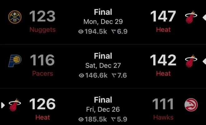 讲下胜利者热火,一直以防守强硬闻名的他们,本赛季玩起了进攻流,打掘金147分,上一场VS步行者142分进账,连续两场得分140+,非常极其疯狂。