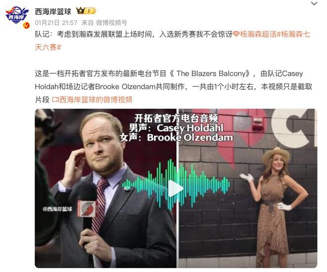 根据开拓者球队记者在他最新播客当中透露的消息,他认为按照目前杨瀚森在发展联盟当中的表现,接下来他对于杨瀚森能够入选NBA全明星新秀赛一点都不感到意外。虽然关于这一次全明星新秀赛的最终入选名单还没有正式公布,但是外界都在传言这个消息,也就意味着杨瀚森有极大的机会能够入选。