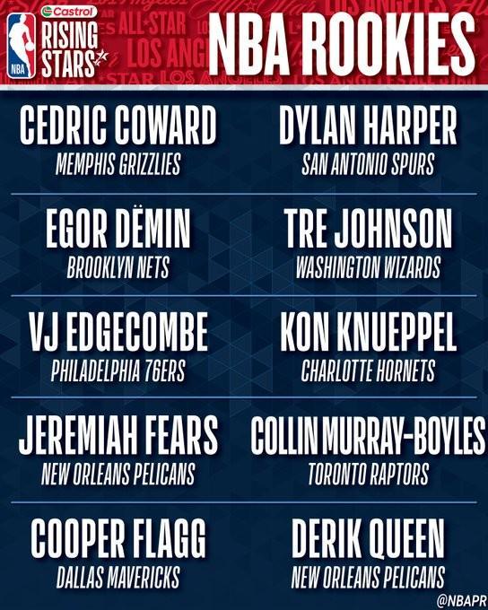 北京时间今日,NBA官方公布了本赛季全明星赛新秀赛名单,中国球员杨瀚森入选G联赛队,今年前四顺位全部入选一年级队,去年的状元秀里萨谢落选二年级队。