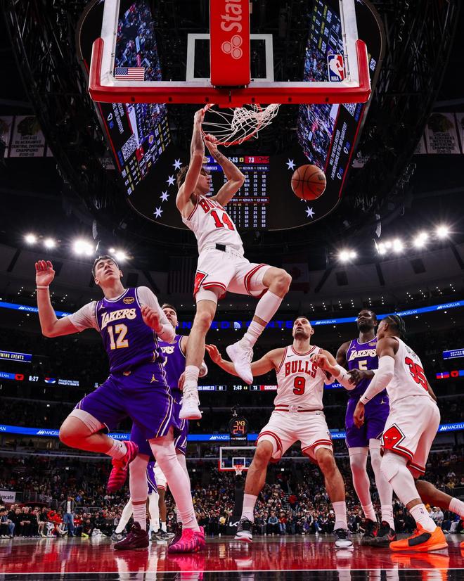 北京时间1月27日,NBA常规赛继续火热进行。湖人奔赴客场与公牛展开对决,两大超人气球队的较量,可谓是看点十足。紫金军团正在致力于冲击西部前4的排位,芝加哥则实现了4连胜状态正酣。此役,特雷琼斯、科林斯伤停,公牛队的首发五虎是奥科罗、史密斯、武切维奇、布泽利斯与怀特,吉迪继续出任替补。里夫斯伤停,雷迪克沿用了詹姆斯、东契奇、艾顿、斯马特与拉拉维亚的首发五虎。东契奇与怀特、吉迪的强力后卫对决是此战的一大看点。詹姆斯能否延续高光表现,同样值得期待。