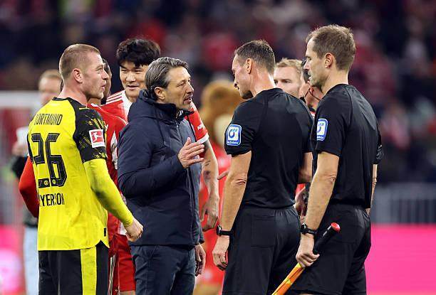 凯恩进球前有一个推搡吉拉西的动作,最终裁判认为进球有效,这在赛后引起了一些争议和抱怨。凯恩对此回应说:“没有,拜托。这是竞争性体育运动。我只是争顶皮球。如果那是犯规,那我就无语了。”基米希认为:“吉拉西本人都没有抱怨。我觉得这不是犯规。我们大家都同意这一点。否则,我们在禁区内看见许多类似的情况也应该判犯规。”多特主帅科瓦奇则认为此球应判无效,“凯恩(与吉拉西)确实有短暂的接触。我必须说,以今天主裁判丹克特吹罚的尺度,这球应该判犯规。他在许多情况都吹哨,如果按这种标准,他也应该吹这次进攻犯规。我认为这是一个明显的错误,按照他今天的吹罚尺度,他应该判(凯恩的进球)无效。”不过多特中卫施洛特贝克胳膊肘往外拐,他认为:“确实有推搡,但我们还是得更好地防守。那并不容易,但凯恩做得很好。他的手臂有一点碰到吉拉西,但我认为这在足球中是允许的,所以我认为进球是有效的。”最后,主裁判丹克特也亲自谈到了凯恩的进球,“那不是推搡,也不是撞击吉拉西的背部。所以我对我的判罚非常有信心,我也把这一决定传递给了我的视频助理裁判,他确认了这一点。这种对抗是德甲比赛中的标准对抗,因此我判定进球有效。如果攻守调转,这种动作就要判点球了,我认为德国足球界不会希望那样。”