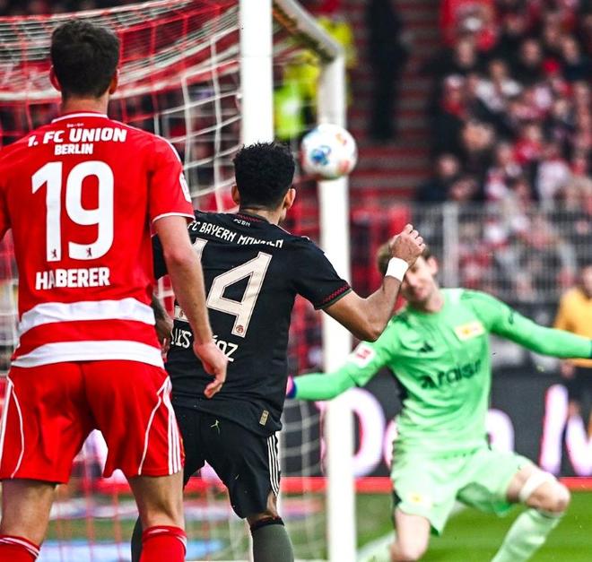 上半场第38分钟,拜仁发起进攻,斯坦尼西奇的直塞力量稍大了一点,足球已经接近底线的位置,但是迪亚斯依然没有放弃,漂亮的滑铲将球护住,完成过人后0度角爆射破门,帮助拜仁扳平了比分。这粒进球的精彩之处不仅仅是迪亚斯最后时刻的0角度射门,还有他在几乎失去一次进攻机会的情况下依然愿意奋力保护每一次球权,也成功做到了这一点,从极限救球到射门都非常精彩。
