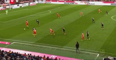 第22分钟,帕夫洛维奇弧顶处断球斜塞,卡尔不停球直接兜射远角,皮球不偏不倚直接击中了立柱;第28分钟,迪亚斯中路直塞打穿防守,凯恩反越位切入禁区低射滑门而过;第35分钟,比朔夫外围起脚远射,皮球折射后再次击中门柱!在连续强压的下,拜仁在半场结束前成功扳平,第44分钟,金玟哉过了中圈后长传送入禁区,迪亚斯在身体失去重心前将球回做,格雷罗反应迅速立马跟进抽射破门,1:1!