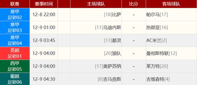 北京时间12月8日03:45,意甲联赛第14轮,那不勒斯坐镇主场马拉多纳球场迎战尤文图斯。上半场,霍伊伦破门。易边再战,伊尔迪兹破门,霍伊伦完成双响。最终那不勒斯2-1尤文。积分榜方面,那不勒斯31分暂升榜首,尤文23分第七。意甲 卡利亚里 1-0 罗马