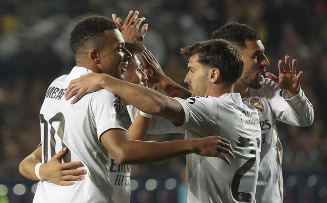 本场比赛开局,皇马一度场面被动。但第23分钟马斯坦托诺成功造点,姆巴佩顶住压力主罚命中为皇马取得领先。而1球在手让皇马随后逐渐展现出实力上的碾压。下半场,姆巴佩先是接到库尔图瓦长传助攻单刀破门,随后又推射破门锁定胜局,本场轻松完成帽子戏法。若不是胜局已定第81分钟被换下,姆巴佩甚至有机会进更多球。赛后,姆巴佩毫无悬念当选本场官方最佳球员。新赛季,姆巴佩在为皇马出场的9场比赛中已经打进了13球,仅1场未进球。最近更是连续6场破门打进10球。而这个帽子戏法,也让姆巴佩再次创造多项纪录。