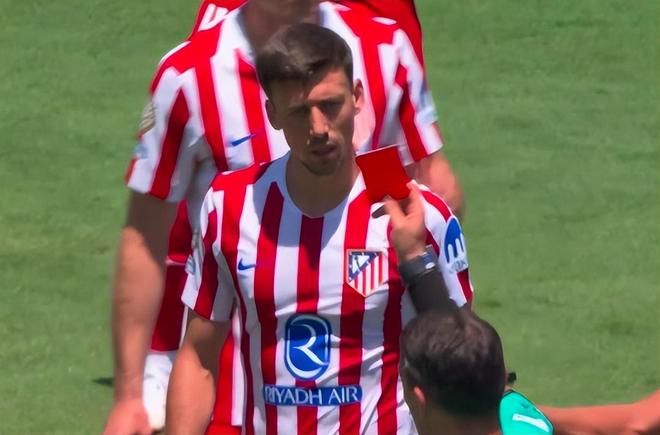 第25分钟,朗格莱战术犯规,被黄牌警告。第41分钟,已经身背一张黄牌的朗格莱在身后故意拉人,被出示第二张黄牌。马竞因此少打一人。对于主裁判的这个判罚,马竞主帅西蒙尼非常愤怒。西班牙媒体透露,西蒙尼在场边怒骂主裁判格拉多:“你真是厚颜无耻,厚颜无耻!”不过,裁判没有对西蒙尼做出处罚。