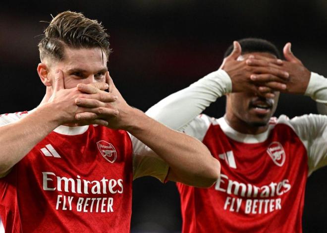 阿森纳全队身价超过13亿欧,而马竞身价则是近7亿欧,两队总身价超过20亿欧。这两家豪门的对决也是本轮欧冠的重头戏,让人关注。外界称这场比赛是矛与盾的对决。上半场,阿森纳锋利的“矛”未能戳破马竞厚实的“盾”。下半场,阿尔特塔再次祭出其最拿手的定位球战术。第56分钟,阿森纳开出定位球,赖斯助攻加布里埃尔头球破门。论定位球的进攻质量,阿森纳说第二,估计没人敢说第一。 第63分钟,马竞连换3人,试图改善进攻。没想到,这让他们陷入了困境。第64分钟,阿森纳打反击,斯凯利送出助攻,马丁内利非常冷静地兜射远角,球进了,2-0。第67分钟,约克雷斯破荒。他在禁区里背身拿球,随后转身打门,阿森纳3-0领先。第70分钟,阿森纳开出角球,加布里埃尔后点头球回做,约克雷斯在门前用大腿将球挡进球门。短短的13分钟,阿森纳连进4球,彻底打崩了马竞。