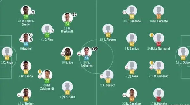 然而,令人没想到的是,下半场的阿森纳开启了真正疯狂进攻模式。当然,马竞的“送礼”(换人)也是给比赛走向转换带来了“帮助”。如果说上半场阿森纳还显的效率低下,那下半场真是拦不住了。第一个进球,加布里埃尔接到了赖斯开出的定位球,通过一个非常阿森纳式的标准进球、完成了破门的成就。应当说阿尔特塔的队伍利用角球、定位球破门,可不是的一次、两次了,这是他们一个非常重要的武器。在过去还有人称阿森纳只会定位球、不会别的;到如今,估计是没人再这么讲了。