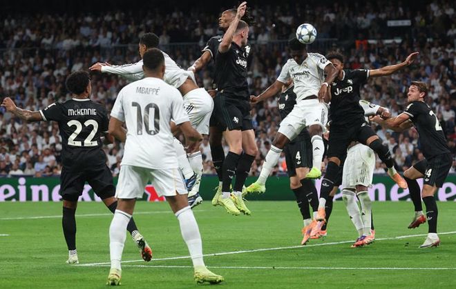 这是一场欧冠冠军之间的较量,皇马曾经15次捧杯历史最多,尤文也有2次加冕,但7次获得亚军则是历史最多。前两轮,皇马连赢马赛、阿拉木图凯拉特,取得开局2连胜,其中姆巴佩一人打进5球,暂居积分榜第二位,尤文连赢多特、比利亚雷亚尔,暂居积分榜第二十三位。在历史交锋上,双方在正式比赛中有过22次碰面,皇马取得11胜2平9负的战绩,最近一次对阵尤文,还是今年夏季的世俱杯16强战,当时1-0击败尤文。两队首发名单如下: 皇马首发:1-库尔图瓦、17-劳尔·阿森西奥、8-巴尔韦德、3-米利唐、18-卡雷拉斯、14-琼阿梅尼、5-贝林厄姆、15-居莱尔、21-迪亚斯、7-维尼修斯、10-姆巴佩尤文首发:16-迪格雷戈里奥、4-加蒂、6-凯利、24-鲁加尼、15-卡卢卢、19-凯夫伦·图拉姆、22-麦肯尼、27-坎比亚索、8-库普梅纳斯、10-伊尔迪兹、9-弗拉霍维奇