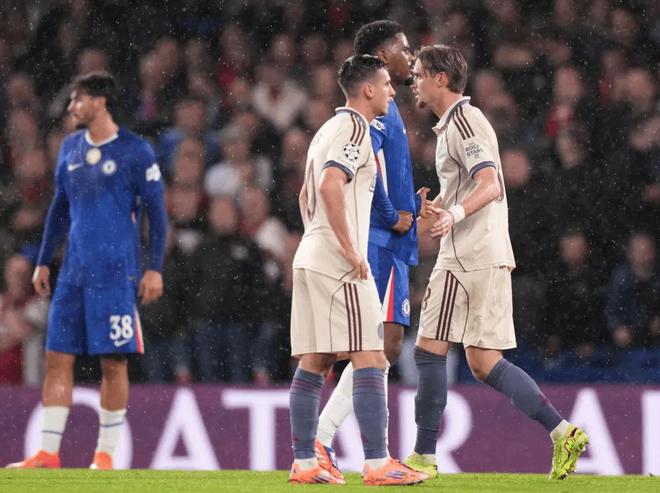 第44分钟,切尔西也拿到点球,恩佐主罚命中,3-1。第45+4分钟,切尔西又一次获得点球,这一次是埃斯特旺来主罚,同样命中。上半场结束,切尔西4-1遥遥领先,比赛已经失去了悬念。下半场开场仅3分钟,桑托斯打进一球,阿贾克斯1-5落后。场上的阿贾克斯球员表情严肃,看上去都非常沮丧。好在,切尔西随后见好就收,没有再下死手。最终,阿贾克斯1-5客场惨败。
