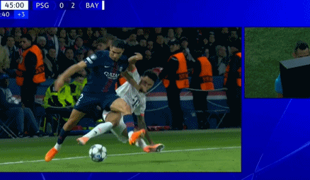 第45分钟,路易斯-迪亚斯回追放倒阿什拉夫,后者倒地痛哭,随后被队友搀扶离场。随后VAR显示路易斯-迪亚斯有剪刀腿的情况,裁判改判直红,7500万先生苦笑离场,拜仁剩下10人应战。易边再战,大巴黎加强攻势,下半场开打仅5分钟,李刚仁角球传中,克瓦拉茨赫利亚头球稍稍高出横梁。第67分钟,克瓦拉茨赫利亚强行突破,禁区前沿起脚劲射,诺伊尔稳稳将球没收,大巴黎始终找不到进球的办法。