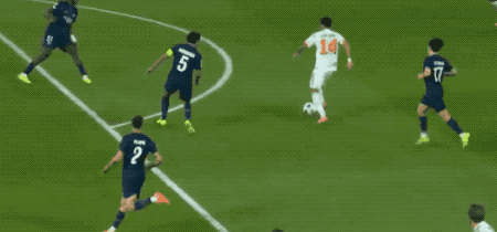 第22分钟,巴尔科拉将球传到左路,法比安横扫到门前,登贝莱撞射破门,但登贝莱接球时已经明显越位,进球被秒吹。