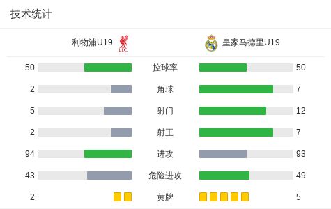 北京时间11月4日,欧洲青年联赛联赛阶段第4轮展开较量,利物浦U19迎战皇家马德里U19。比赛中,皇家马德里U19率先打破僵局,纳瓦斯库埃斯送出助攻,jacobo ortega成功破门。易边再战,迭戈-阿瓜多精准传球,阿德里安-佩雷斯接球后扩大比分。随后,丹尼尔-亚涅斯送出妙传,海梅-巴罗索冷静施射再下一城。比赛进入补时阶段,阿尔瓦罗-莱斯卡诺助攻迭戈-阿瓜多锁定胜局。最终全场结束,利物浦U19 0-4 不敌皇家马德里U19。精彩瞬间第14分钟,皇家马德里U19球员纳瓦斯库埃斯助攻jacobo ortega打入一球。第48分钟,皇家马德里U19球员迭戈-阿瓜多助攻阿德里安-佩雷斯打入一球。第76分钟,皇家马德里U19球员丹尼尔-亚涅斯助攻海梅-巴罗索打入一球。下半场补时第2分钟,皇家马德里U19球员阿尔瓦罗-莱斯卡诺助攻迭戈-阿瓜多打入一球。技术统计