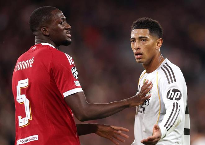 皇马可以说是利物浦欧战的苦主,双方11次直接对话,银河战舰取得了7胜1平3负的压倒性优势,不过上赛季第一阶段的强强对话中,利物浦2-0笑到了最后,渴望延续强势发挥的斯洛特,此役沿用了4231的阵型,马马尔达什维利出任首发门将,罗伯逊、范迪克、科纳特和布拉德利构筑后防,双后腰则是麦卡利斯特和赫拉芬贝赫,维尔茨、索博斯洛伊和萨拉赫坐镇中场,单箭头则是埃基蒂克。在阿隆索执掌皇马帅印之后,一度陷入到了遇强不强的质疑当中,不过在本赛季首回合国家德比战胜巴萨后,皇马众将士战胜了心魔,远征安菲尔德球场,阿隆索也是毫无保留,祭出了4141的阵型,库尔图瓦镇守龙门,身前是巴尔韦德、米利唐、赫伊森和卡雷拉斯组成的四后卫,琼阿梅尼出任单后腰,卡马文加、居莱尔、贝林厄姆和维尼修斯在中场一字排开,姆巴佩则一个人突前。