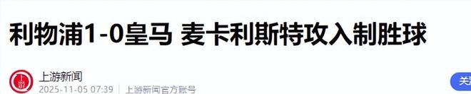 本文叙述皆有官方信源,为了读者有更好体验放在了文章后缀!今天凌晨欧冠联赛第四轮已经结束,而利物浦坐镇安菲尔德球场迎战皇马。这两支队伍的实力都是非常强大的,正因如此这场对决成了焦点之战。关键时候麦卡利斯特帮助球队拿到了至关重要的一球。直接实现了超级大反弹成功击败对手,而他的排名更是冲上了第六。当时到底发生了怎样的精彩表现?欧冠冠军之间的对决皇马之前拿到的冠军已经是历史上最多的,反观利物浦虽然也多次拿到欧冠的冠军。一旦遇到皇马实力起伏就会变得很不稳定,而最近两队交手皇马已经连胜6次。这样的差距对于利物浦而言十分的不利,这次利物浦无疑是憋足了劲要打一场漂亮的翻身仗。可是面对强大的对手双方也不知处于什么样的心理,比赛开始之后就踢的都很谨慎。这也导致双方球队并没有踢出什么高质量的球,双方迟迟没有得分就这样直接拖到半场结束。如果再不创造强势具有威胁性的攻势,这会影响其他球员的心态和的发挥。也就在第10分钟的时候利物浦的7号球员维尔茨前场翻墙拿到了球权。但是经过两次的传球却因为10好球员麦卡利斯特踢偏,导致错失得分的机会他也感到很自责。之后双方球员的状态逐渐调整过来,利物浦展开了持续的进攻。这一变故直接打了皇马一个措手不及,但是皇马的1号球员库尔图瓦及时挡出,没有让利物浦得分。超级大反弹整场比赛双方都在想尽办法进攻,却都遭到了对手的阻挡。在第31分钟的时候8号球员索博斯洛伊在外围进攻的时候,不慎踢到了皇马14号球员琼阿梅尼的手臂。虽然这一幕被摄像机录下来,可裁判并没有任何判罚,这无疑给利物浦球员的情绪带来了一定的波动。不过他们很快就重新集中了注意力,继续投入到比赛当中。之后比赛继续进行利物浦的索博斯洛伊在禁区外围突施冷箭,却再次遭到库尔图瓦的扑出。直接让皇马在进攻中占据了一定的心理优势,但利物浦并没有被这连续的挫折打倒,他们越战越勇,攻势愈发猛烈。可是整体来说皇马上半场占据着绝对的优势,但是即便球员们的控球率达到61%。他们依旧没有创造出破门的机会,反观利物浦凭借9次射门4次打正,创造了1次绝佳机会和获得1个角球。但是就这样双方你来我往,僵持到61分钟的时候利物浦球员的默契配合。在索博斯洛伊将球传至球门前世,麦卡利斯特凭借头球直接一顶制胜,实现了超级大反弹。全场最佳球员虽然上半场比赛的时候麦克利斯特出现了失误,但是在最后时刻帮助球队但到至关重要的一分。直接打破僵局为利物浦带来了胜利,无疑是全场最佳球员。麦卡利斯特在错失得分机会后。并没有陷入自我怀疑和消沉,而是迅速调整状态,积极投入到后续的比赛中。他在防守端也表现得十分积极,不断地参与到球队的防守体系中,为球队筑起了一道坚实的防线。在进攻时他总是能敏锐地捕捉到场上的机会,积极跑位,为队友创造出更多的进攻空间。根据数据显示这次皇马整体的进球数量只有0.45,成为今年最差的数据。而守门员库尔图瓦为队伍挽救了8次,其中包括4次扑下了来自禁区的射门。还有三次出击都成功的拦住了对方的进攻,可是即便如此结果并没有任何改变。反观这次利物浦拿下这次的胜利,已经是第5次零封战胜皇马,他们也成了历史上零封皇马次数最多的队伍。结语这次比赛直接改变了利物浦球员们的气势,之前的隐阴霾也因这场胜利一扫而空,这是对他们最好的认可。虽然本场比赛压力不小,但去也让他们找到了获胜的方法。再说足球本就是一项团队运动,需要球员之间的相互配合,才能给对手制造麻烦核阻碍。这场比赛一共有59916名观众,直接刷新了利物浦主场最高上座率。上游新闻(利物浦1-0皇马 麦卡利斯特攻入制胜球2025.11.05)澎湃新闻(体坛联播|利物浦送皇马欧冠首败,阿森纳追平122年纪录2025.11.05)北京日报客户端(欧冠利物浦击退皇马 拜仁客胜大巴黎2025.11.05)