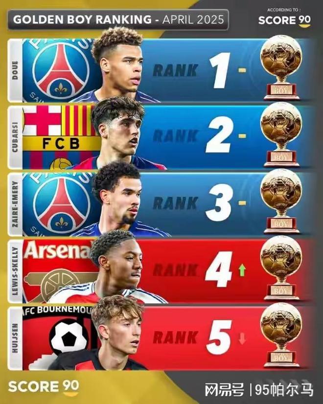 杜埃并非横空出世,在捧起金童奖之前,20岁的法国天才身价高达9000万欧元,在足坛同龄人中高居第一,被他比下去的包含了赫伊森、伊尔迪兹、居莱尔等一系列希望之星,荣膺金童奖是顺理成章的结局。杜埃在个人数据对比中同样是一马当先的角色,据统计在2024-2025赛季,出场了61次,贡献了16粒进球和14次助攻。当然,顺利捧起金童奖的另一个筹码是集体荣誉,杜埃相继捧起了法甲冠军、法国杯冠军、欧冠冠军和欧洲超级杯冠军。