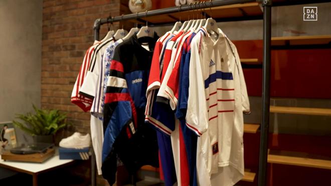 来,选一件开始。你肯定会先选法国队的,对吧?哈哈,是啊。你们带来的这些真古老,这件齐达内的球衣太经典了。