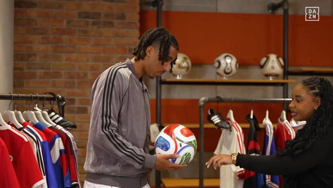 欢迎来到阿迪达斯Retro Remix节目。这里有最经典的阿迪达斯球衣——曼联球衣,还有一点国际元素。随着我们展望2026年世界杯,也一同庆祝全新的阿迪达斯世界杯比赛用球Trionda。今天,我们邀请到了曼联后卫约罗。欢迎来到节目!最近怎么样?挺好的。今天你的造型很有范儿。哈哈,他们给我搭得挺好看的,说实话挺有感觉的。准备好一起看看这些球衣了吗?准备好了。这是全新的阿迪达斯世界杯比赛用球Trionda。第一眼的感觉是什么?老实说,挺棒的,颜色很鲜艳,我很喜欢。你看,上面有加拿大、美国,还有墨西哥的元素。这挺酷的,我觉得我们能用过它实现很多目标。