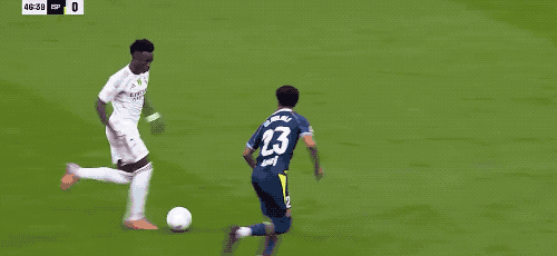第43分钟,维尼修斯利用速度和技术突破传中,姆巴佩面对绝佳机会,将球打偏。