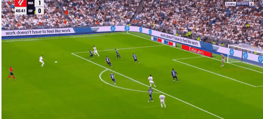 第34分钟多兰左路过掉库尔图瓦后的传中,又被米利唐封堵,半场比赛结束之前,维尼修斯精彩过人后杀入西班牙人腹地,熊皇并未贪攻,而是传给了位置更好的姆巴佩,可惜法国前锋的打门没有命中目标,错失了扩大领先的绝佳机会。