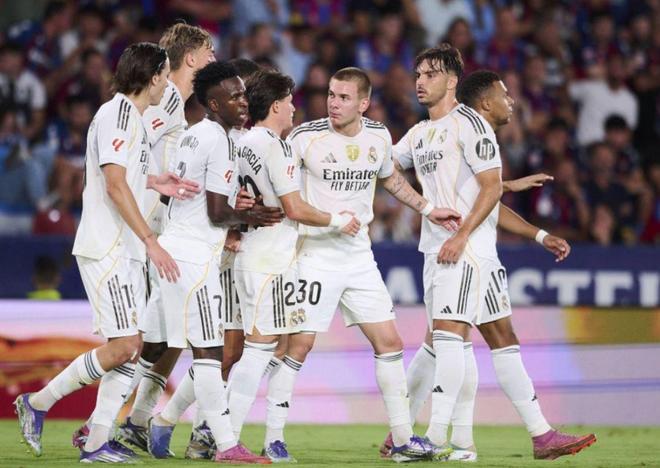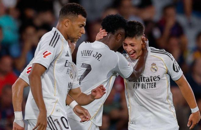 阿隆索到来后,皇马的面貌焕然一新,球队上下充满斗志,人人都有着较强的狼性精神。本场比赛,皇马从第一分钟开始就牢牢占据场上的主动权,反客为主。第28分钟,皇马前场断球,巴尔韦德直塞,维尼修斯在禁区右侧外脚背弹射入网!1-0!进球后,维尼修斯做出了跳舞的庆祝动作,并亲吻队徽。近期,他被曝与阿隆索产生不和。