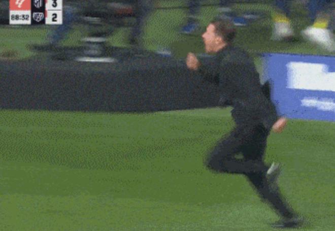 第49分钟,略伦特禁区里倒地,对方门将上前质疑他假摔。双方球员发生言语上的冲突。在此过程中,科克用手掐住对方门将的脖子,后者随即倒在地上。裁判向科克出示黄牌,马竞逃过一劫。第80分钟,阿尔瓦雷斯门前补射,将比分追平,2-2。西蒙尼并不满足1分,这场比赛他只有拿到3分才能过关。