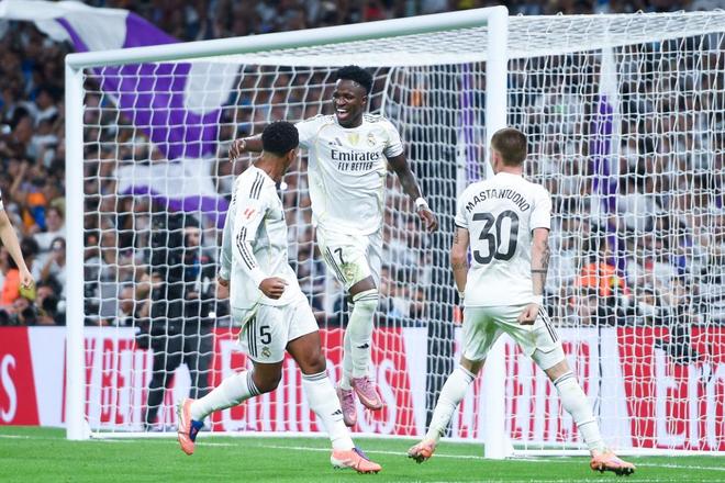皇马目前暂居第一,但问题也不少。阿隆索扶正姆巴佩后,球队的进攻自变得顺畅了,但后防尤其是中后卫的隐患还是存在。马德里德比的惨败,开赛以来的全胜金身告破,就是顶不住马竞强硬彪悍的逼抢,皇马的后防线根本站不住。