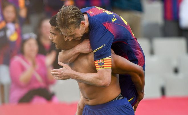 巴萨在主场完成极限绝杀,以2-1击败了赫罗纳。这场比赛巴萨在第13分钟就取得领先。佩德里内切低射破门。7分钟后,维特塞尔就扳平比分。他打进一粒漂亮的倒钩进球。下半场库巴西进球被吹掉。直到补时阶段,阿劳霍站了出来,他打进绝杀进球,帮助巴萨全取3分。阿劳霍激情脱衣庆祝,拿到了黄牌。