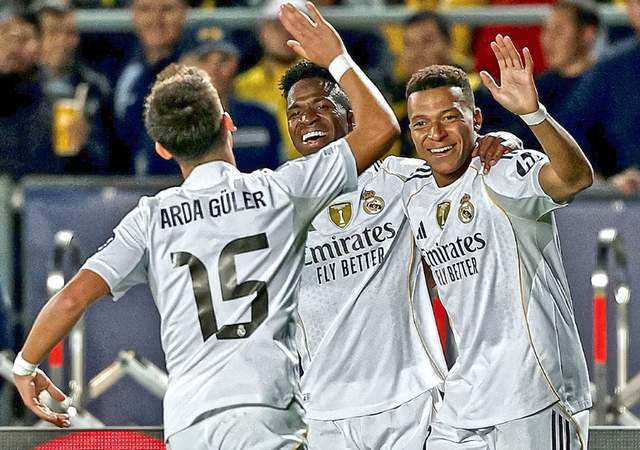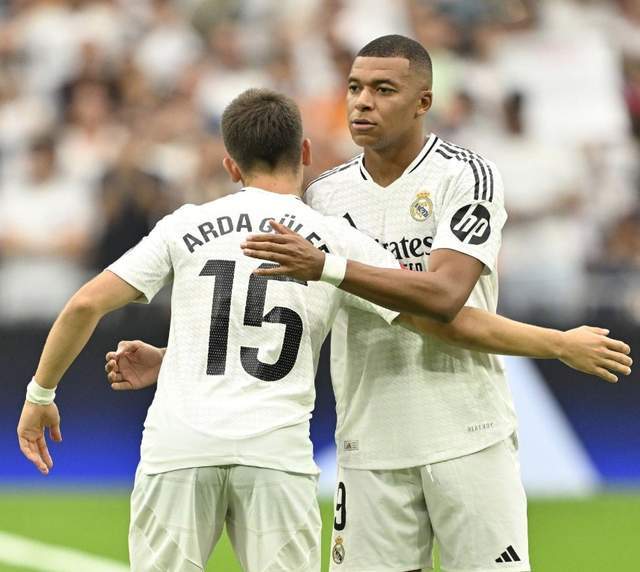 “皇马新三巨头诞生”,10月17日的《阿斯报》,点评皇马的进攻线。阿隆索出任皇马主帅之后,重新打造皇马攻击体系,姆巴佩、维尼修斯、居勒尔3人,成为绝对主力。无论是433,还是4231阵型,姆巴佩、维尼修斯、居勒尔都得到阿隆索的绝对信任。2025-26赛季,皇马在西甲8场打进19球,欧冠2场7球,10场比赛打进26球,场均2.6球的进攻火力相当不错。姆巴佩、维尼修斯、居勒尔3人,贡献了皇马85%的进球:作为主力中锋的姆巴佩,进攻效率最高,西甲8场9球2助,欧冠2场5球,总计14球2助。维尼修斯也渐入佳境,西甲8场5球4助,欧冠2场没有斩获。得到阿隆索偏爱的居勒尔,西甲8场3球3助,欧冠2场1助,总计3球4助。皇马在西甲和欧冠的26个进球,有22球是姆巴佩、维尼修斯、居勒尔的三巨头打进,占比85%!如果从助攻角度看,皇马全队总计19次助攻,三巨头就贡献10次,占比超过一半。《阿斯报》指出,皇马三叉戟彼此配合默契,居勒尔的4次助攻,全都送给姆巴佩;维尼修斯的4次助攻,一半给了姆巴佩,1个给了居勒尔。在居勒尔的使用上,阿隆索很有心得:“居勒尔是攻击型中场,更多展现进攻才华,串联中场与姆巴佩。”状态最好的还是姆巴佩,《阿斯报》表示,如果姆巴佩保持现有效率,2025-26赛季踢60场比赛,场均1.4球,法国巨星能进80球!当然,这样的效率过于夸张,但姆巴佩可以冲击60球大关,打破C罗在皇马的单赛季进球纪录——2014-15赛季,C罗在皇马打进61球,创造最佳纪录。本赛季姆巴佩再踢50场,保持场均1球的效率,就能打破C罗的纪录。这次FIFA比赛期,皇马的三巨头在各自国家队都表现出色。姆巴佩在法国vs阿塞拜疆的比赛中传射建功;维尼修斯在巴西5-0韩国的热身赛中1球1助;居勒尔在土耳其6-1狂胜保加利亚的世预赛中1球2助。