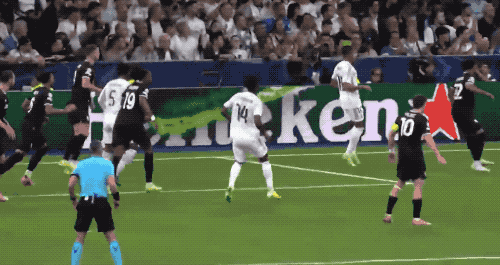 整个上半场,皇马完成了14次射门,比分却是0-0。下半场开始只有5分钟,尤文图斯获得绝佳机会。身材高大的弗拉霍维奇长途奔袭,米利唐身后紧追,弗拉霍维奇的射门被库尔图瓦挡出。