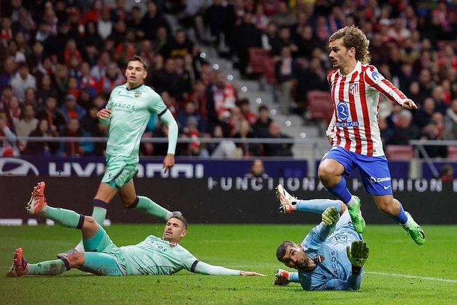 比赛中。图源:视觉中国上半场第12分钟,德拉富恩特门前不慎自摆乌龙,马竞1-0莱万特,第21分钟,奥拉萨加斯蒂开出角球,马努-桑切斯禁区内头球破门,马竞1-1莱万特。下半场第61分钟,马竞组织进攻,略伦特边路传中,格列兹曼推射破门,马竞2-1莱万特,第80分钟,阿尔瓦雷斯射门被扑,格列兹曼跟进铲射破门完成双响,最终马竞3-1战胜莱万特。