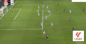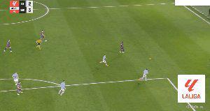 45+4’ 拉什福德横传,塞尔塔球员解围变线,亚马尔后点破门,巴萨3比2领先。