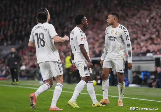图片易边再战,第59分钟,阿尔瓦罗-卡雷拉斯助攻,姆巴佩在禁区外轰出远射破门完成梅开二度,最终本场的比分锁定在3-0,皇马取胜!本场比赛,姆巴佩参与了所有的进球,他打进2球和1个助攻!