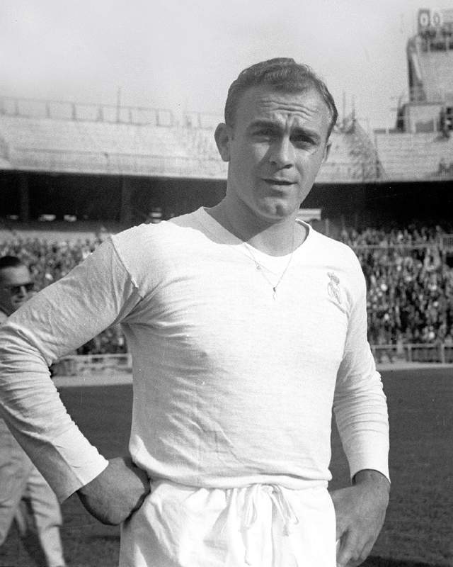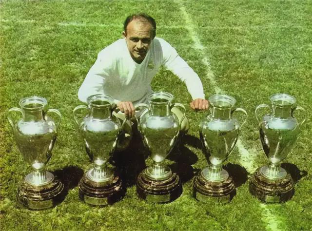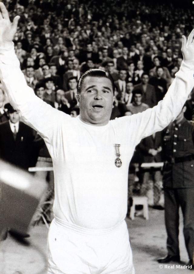 当年的皇马,阵中拥有迪·斯蒂法诺、普斯卡什、亨托、马基托斯、里亚尔等传奇球星。星味儿相比后来的“银河战舰”,C罗时期,也毫不逊色。头号球星,绰号“金箭头”的迪·斯蒂法诺,效力皇马11年,8次赢得西甲冠军,5次西甲金靴,5次欧冠决赛都有进球,2次荣膺金球奖。如果换个时代,迪·斯蒂法诺完全可以跟C罗、梅西比金球奖以及各种进球数据。遗憾的是,迪·斯蒂法诺职业生涯44年,先代表阿根廷,后代表西班牙,竟然一次世界杯都没踢过,代表阿根廷时,阿根廷退赛,帮助西班牙打进了世界杯,自己因伤缺席。要不然,他的成就将令球王贝利、马拉多纳都难以企及。比迪·斯蒂法诺小一岁的匈牙利传奇前锋普斯卡什,绰号“飞奔的少校”,他领衔的匈牙利在1950年代初期天下无敌,仅输掉了1954年世界杯决赛。1958年夏天,普斯卡什加盟皇马,1960年欧冠决赛打进四球,帮助皇马7-3大胜法兰克福夺冠是其成名作。