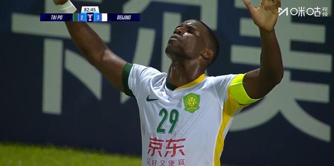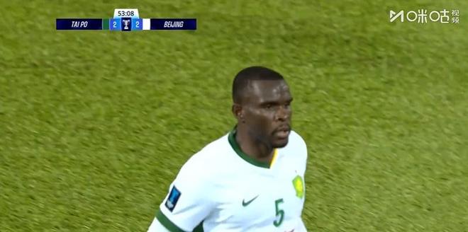 第35分钟,北京国安前场右侧角球战术配合,张稀哲传中,前点柏杨甩头攻门将球顶进,帮助国安扳回一分。