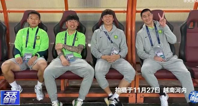 这四位老将分别是:李磊、张稀哲、池忠国和侯森。他们是2018年国安在足协杯夺冠的见证者,在11月27日亚冠比赛现场,四位老将在替补席合影留念。北京国安技术分析郑博伟说:当时是我在替补席整理我们用的ipad,里面有比赛所需的东西,李磊就把这三个人喊过来。然后就有了这张照片的由来。李磊:“当时在越南,我们几个都在替补席,咱们四个人就是18年决赛,咱们都是首发,这一晃都成了老将了。”池忠国:“正好我们四个老将,都在替补席上,坐在一起。李磊就说,咱们留个纪念,拍个照。”张稀哲:“李磊就说,我们四个拍个照。”侯森:“正好说到这个足协杯,当时足协杯只有我们四个人还在队里。”