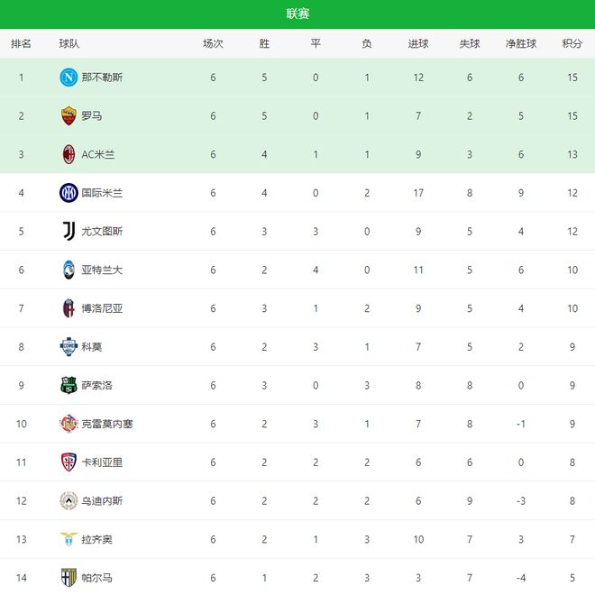 随着米兰与尤文的平局,那不勒斯与罗马成为最大赢家。目前意甲积分榜如下:第1名:那不勒斯,5胜1负,积15分;第2名:罗马,同为15分,仅因净胜球劣势屈居次席;第3名:AC米兰,13分;第4名:国际米兰,12分;第5名:尤文图斯,12分(净胜球劣势);第6-7名:亚特兰大与博洛尼亚,均积10分。从目前来看,那不勒斯与罗马依然是整体最稳定的球队;而AC米兰、尤文、国米都在状态起伏中寻找节奏。接下来的赛程才是真正的考验。10月中旬,那不勒斯将迎战国米,而罗马则对阵亚特兰大。届时,榜首之争可能再度易主。