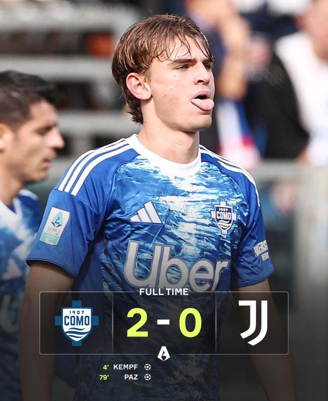 意甲第7轮爆出重磅冷门,科莫坐镇主场,2-0完胜意甲豪门尤文图斯,不仅送给对手6场不胜,法布雷加斯的球队更是积12分跃居意甲积分榜第五,仅仅比领头羊国际米兰少3分,意甲小黑马已经诞生。其中,21岁的阿根廷天才尼科·帕斯闪耀全场,1传1射导演胜利,而场边,温格与亨利亲眼见证了弟子法布雷加斯执教生涯的高光一夜。此役的败北对于尤文来说,多少有点“耻辱”的味道,斑马军团可是整整73年未输过科莫,上一次,还是在遥远的1951-52赛季,现如今,少帅法布雷加斯以一场2-0完胜,让这座小城雪耻这一尴尬纪录。