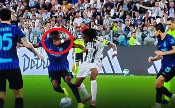 对手主动伸脚找点球的事情,并不是第一次发生在国际米兰身上。2020/21赛季的意甲联赛第37轮,夸德拉多在禁区内主动将脚踢在佩里西奇的腿上,随即倒地,主裁判居然无视夸德拉多的假摔,判给尤文点球。最终,尤文依靠着裁判的爱护,再次击败蓝黑军团。