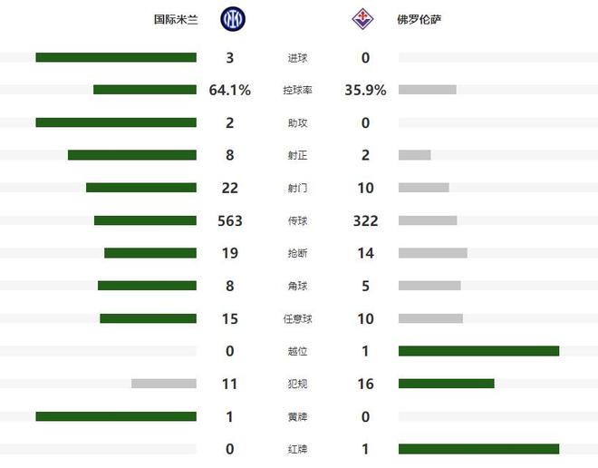 上赛季意甲战罢,获得第六名的佛罗伦萨,在本赛季一蹶不振,前八轮结束之后,还没有品尝过胜利的滋味,仅仅取得了4平4负的战绩,排名意甲积分榜倒数第三,如此低迷的状态,让手握主场优势的国际米兰,没有不胜的理由。为了能够全取三分,在积分榜上咬住领头羊那不勒斯,齐沃此役沿用了球队最熟悉的三后卫体系,索默继续为球队镇守龙门,巴斯托尼、比塞克和阿坎吉构筑后防,迪马尔科、苏契奇、恰尔汗奥卢、巴雷拉和邓弗里斯坐镇中场,双箭头则是劳塔罗马丁内斯搭档埃斯波西托。 比赛正式开打后,国际米兰就在主场球迷的助威声中,大举压上围攻紫百合,第6分钟劳塔罗杀入禁区后摔倒,但主裁判没有任何表示,2分钟之后,恰尔汗奥卢开出的定位球,精准找到了劳塔罗,可惜后者的头球攻门高出了横梁,第11分钟劳塔罗角球机会的头球,再一次顶高。第27分钟巴斯托尼前场抢断后,长驱直入杀入紫百合禁区,但随后的打门被德赫亚神勇化解,8分钟之后,国米打出边中结合,迪马尔科门前的高质量包抄打门,依旧无法攻破德赫亚的十指关。