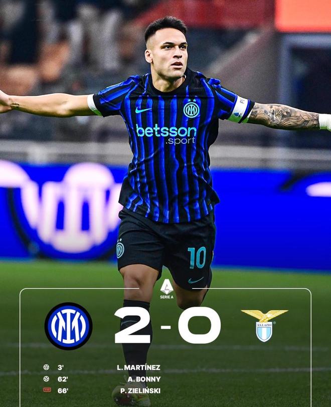 国际米兰 2-0 拉齐奥国际米兰坐镇梅阿查迎战来访的拉齐奥。过去两个赛季,国米都未能在自家主场拿下蓝鹰,几次遭遇憋蓝黑军团一口气。最终,劳塔罗闪击、博尼锁定胜局,蓝黑军团2-0完胜,重新杀回意甲积分榜首位。