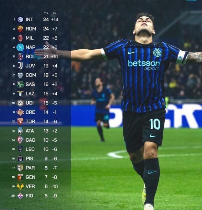 比赛刚开场3分钟,梅阿查球场就陷入了沸腾,国米队长劳塔罗马丁内斯,用他标志性的机敏跑位和冷静施射,为球队敲开了胜利之门。这粒闪击进球,不仅为比赛定下了基调,更让劳塔罗的名字再次载入国米史册。根据技术统计,这粒进球是劳塔罗在2025年意甲打进的第10球。至此,他达成了连续7个自然年(2019年至2025年)意甲进球数上双的惊人成就。这意味着无论身边搭档是谁,无论球队处于顺境还是逆境,劳塔罗的进球输出始终稳定如磐石。阿根廷前锋成为继阿尔托贝利(7年)、洛伦齐(8年)、梅阿查(8年)之后,第四位达成此项成就的国米球员。