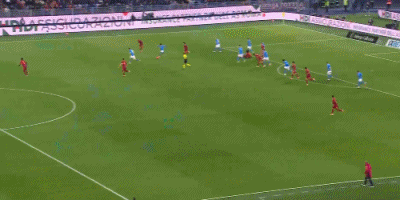 易边再战落后的罗马进攻还是没啥起色,第75分钟,那不勒斯右路快速反击,波利塔诺带球持续推进斜切到禁区弧顶前左脚大力兜射,斯维拉尔奋力将球扑住。1分钟后罗马这边也回敬了个远射,佩莱格里尼禁区弧顶处大力抽射打飞了,第89分钟,罗马迎来本队全场最好的机会,两名替补登场的球员配合,迪巴拉禁区弧顶前挑传,巴尔丹齐接球突入禁区闪出空当近距离大力推射,门将萨维奇奋勇将球扑出。最终那不勒斯客场1:0小胜,拿下这场榜首大战。