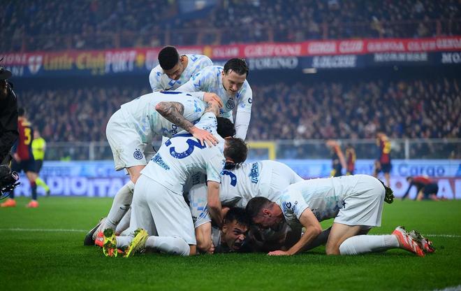 热那亚1:2国米率先出场的AC米兰被萨索洛逼平,那不勒斯又翻车不敌乌迪内斯,争冠的对手同一轮集体没有赢球,这让国米看到了反超的机会。客战热那亚比塞克第6分钟便接到劳塔罗的回敲后左脚劲射近角打破场上平衡;第38分钟,劳塔罗禁区内扛开防守后劲射再接再厉扩大优势;劳塔罗也成为了姆巴佩,哈兰德和凯恩后,仅有的连续7个赛季在五大联赛参与进球上双。纵使热那亚下半场追回一球,国米仍然2:1取胜,反超米兰1分来到意甲榜首。