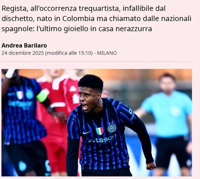 消息来源:德转4 - 新人出现近日,《米兰体育报》谈到了国际米兰U19小将迪兰·萨拉特,他们表示球员在加盟球队后迅速展现出全面的实力。这位在哥伦比亚出生、西班牙成长并在意大利崭露头角的年轻天才,他不仅是一个点球高手,还是一名中场多面手,能够胜任多个位置。萨拉特在2023年夏天加盟国际米兰后迅速融入球队,尽管他的表现曾有过起伏,但他始终保持着对比赛的热情和决心。萨拉特的技术特点与恰尔汗奥卢相似,他能组织进攻、主罚点球,并且能够在比赛中灵活变换角色。无论是作为中场核心还是边路球员,萨拉特都能展现出出色的能力。他在球场上的冷静和自信尤其令人印象深刻,尤其是在关键时刻,他总能挺身而出,承担起罚点球的责任。
