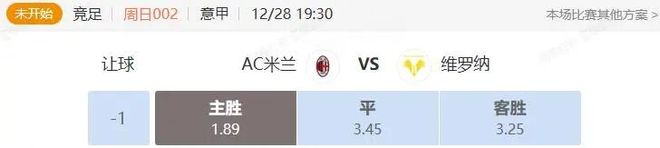 从本赛季表现来看,15场联赛AC米兰取得了9胜5平1负的好成绩,比较亮眼。而而维罗纳仅取得2胜6平7负,深陷保级区。开局13场联赛一胜难求,近两场比赛取得两连胜,才逐渐尝到胜利的滋味。究其原因,主要是阵容和伤病困扰,上赛季的一些主力被卖掉,新引进的像奥尔班等,和球队磨合的不是很好,很多场比赛虽然局势上占优,但是总是差临门一脚。攻击线很薄弱,进球主要依靠吉奥万和奥尔班。防守线也脆弱不堪,第8轮主场对战卡里亚里,在上半场领先两球的情况下,被对手下半场逼平。唯一一场亮眼的比赛就是主场对战国米那场,1:1的比分凭借顽强的意志坚守到下半场90分钟,可是补时阶段被一脚乌龙球葬送了好局,迷一般的存在。而AC米兰虽然整体表现还可以,但是近期表现不佳,面对弱旅就拉胯的原因,主要是球员状态。一是伤病困扰,使得像莱奥这种核心主力无法上场,影响了进攻效率,二是新球员和球队的磨合不好,本赛季新援恩昆库表现持续低迷,目前主力前锋莱奥因伤出战成疑的情况下,恩昆库能否临危受命,挑起进攻拿分的大旗,对比赛的影响举足轻重。从近期状态来看,维罗纳连续两场取胜,核心球员找到了状态,球员们也在胜利中找到了自信。而AC米兰由于赛程的密集使得近期的表现不好,好在本场比赛休息调整的时间足够充足,像AC米兰的问题相比较维罗纳来说,短期内更容易做调整。维罗纳攻防弱只能依靠引援来升级阵容,而AC米兰现在阵容深度足够,主要的解决的问题,是怎么做好球员和球队战术的磨合,还有怎么提升进攻效率。从主客场表现来看,本赛季AC米兰联赛场均进球1.6个,场均失球0.86。主场场均进球1.5个,失球场均1个。维罗纳15场联赛场均进球0.86,场均失球1.46。客场场均进球0.6个,场均失球1.6个。AC米兰攻受守均衡,而维罗纳比较疲软,攻防俱废。AC米兰近10个主场7胜2平1负,其中不乏有那不勒斯,罗马这种强队,含金量十足。而维罗纳客场表现可以用灾难级来形容,本赛季8个客场1胜3平4负。所以此番对战,AC米兰占据主场优势,而维罗纳做客远征,情况不容乐观。本场比赛两队得分欲望强烈,一个想登顶榜首,一个想脱离降级区。所以从战术布置上来看,维罗纳应该会以保守的防御姿态来迎战AC米兰。而这场比赛AC米兰。能否在这种密集防守的阵地战中,找到突破口。或者能否有人挺身而出,打破僵局,给对手致命一击,对比赛能否取胜,至关重要。本场给到AC米兰的数据支持足够,可以参考之前和比萨,萨索洛的比赛,这两场都是2:2战平对手,未能赢下比赛和数据。本场继续给到同样的让步,对比近期两队表现,AC米兰的表现弱于维罗纳,所以就给了维罗纳方向的想象空间,或者平+让平组合,但是平和让平的回报过高,不利于打出,且能看到机构对让胜这个结果打出有所防范。至于AC米兰能不能赢2球,仁者见仁智者见智,我个人认为本场AC米兰可以大胜反弹,且正好赢2球,竞彩单选让胜,比分2:0。