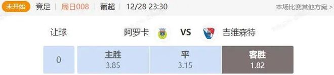 1.专家:钟强竞足 周日008 葡超 阿罗卡VS吉维森特开赛时间:2025-12-28 23:30:00