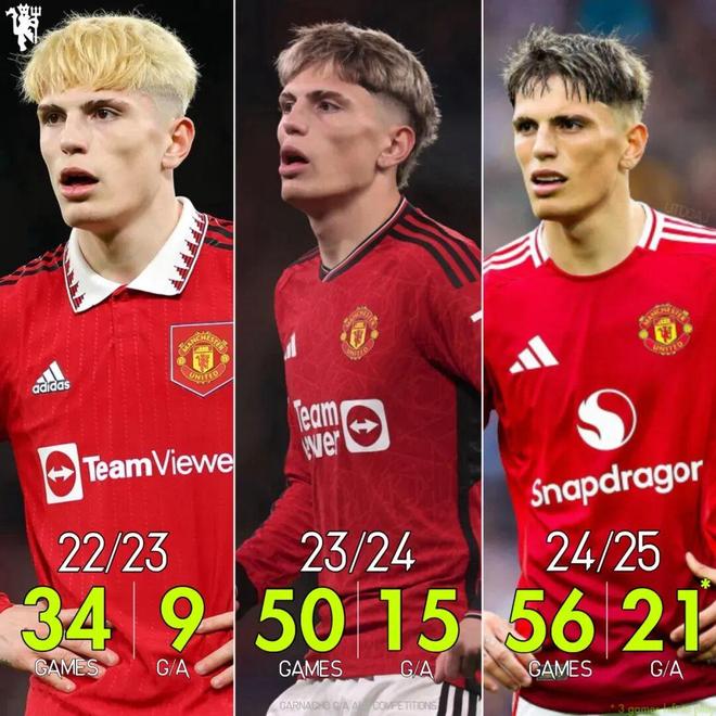 加纳乔出自曼联青训体系,总共为曼联一线队出战过144场比赛,贡献了26球并送出22次助攻。上赛季,加纳乔在曼联出场58次,其中36次首发,打入11球,送出10次助攻。在曼联队内,加纳乔的贡献仅次于队长B费。只可惜,阿莫林瞧不上加纳乔,最终导致后者被无情清洗。这一次反戈旧主,加纳乔必然会全力以赴。