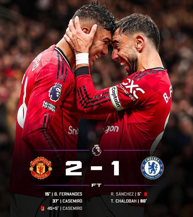 这粒进球让切尔西士气大振,继续积极进攻试图扳平,比赛最后阶段场面一度十分焦灼。随着主裁判吹响哨声,曼联主场2-1击败切尔西,赢得了这场